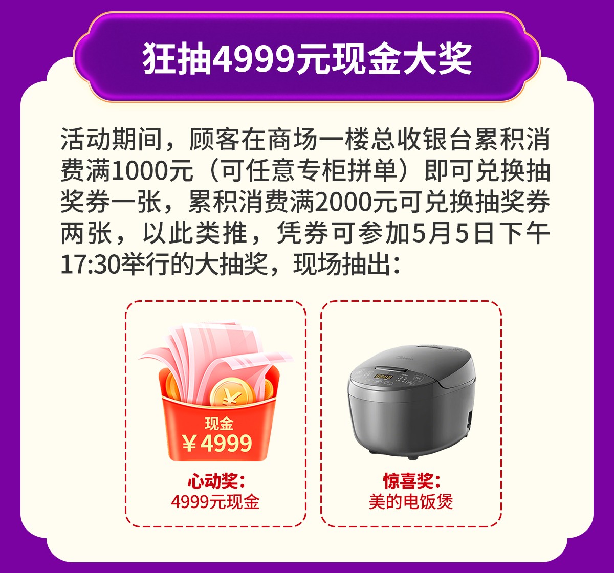 活动时间:4月25-26日/5月1-5日(限此七天)9:30-21:00